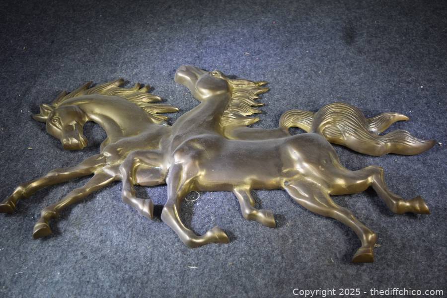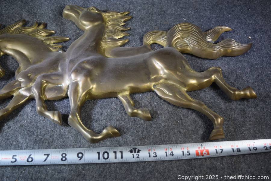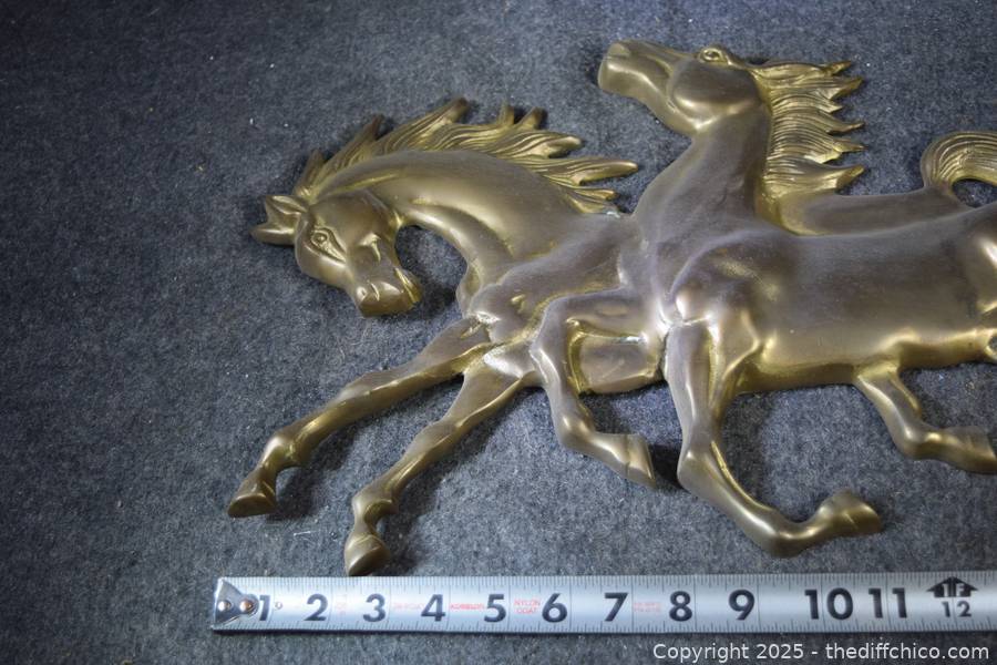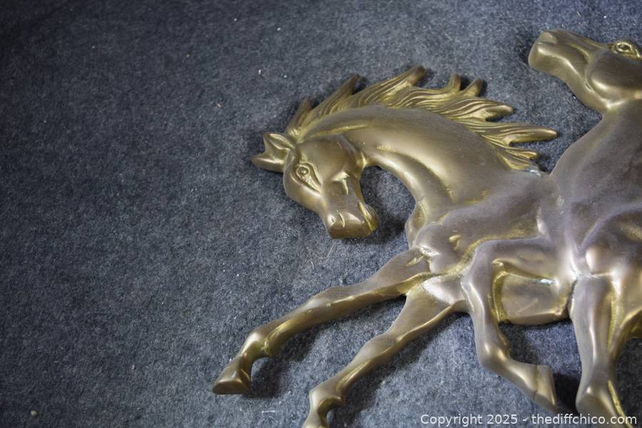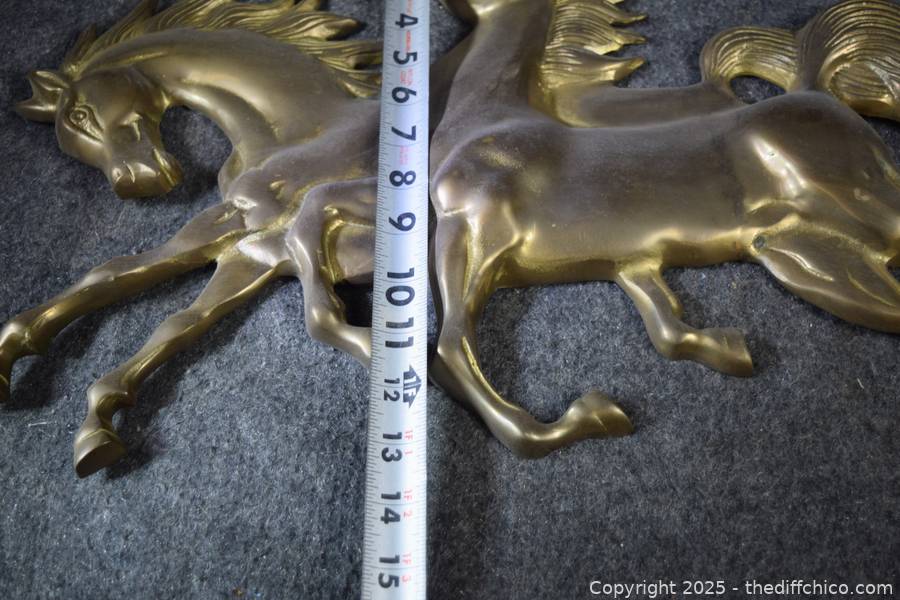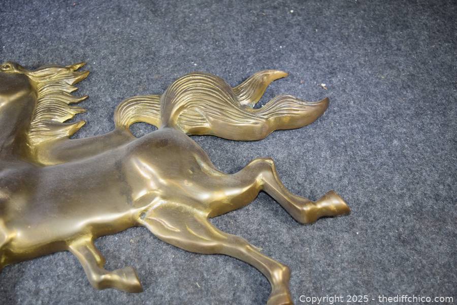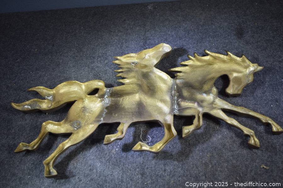 Lot #0287: 2 Running Brass Horses Wall Hanging