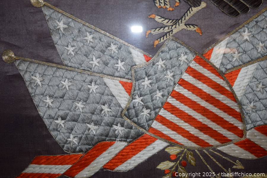 Lot #0101: Framed Patriotic American Eagle Silk Embroidery - 30in x 29in