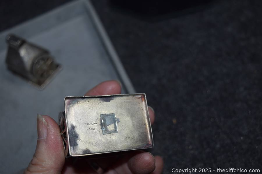 Lot #0223: Sterling Silver Water Mill Salt and Pepper Set