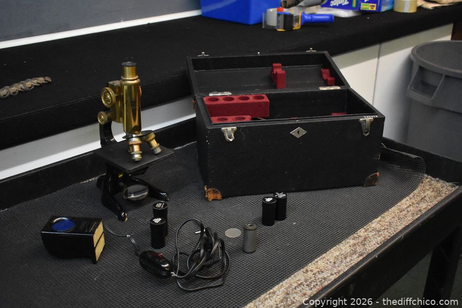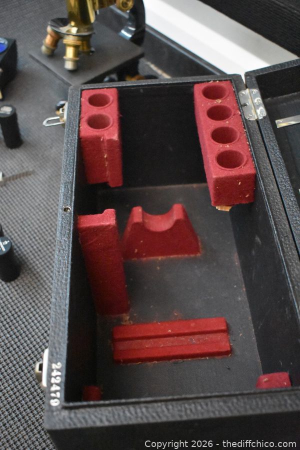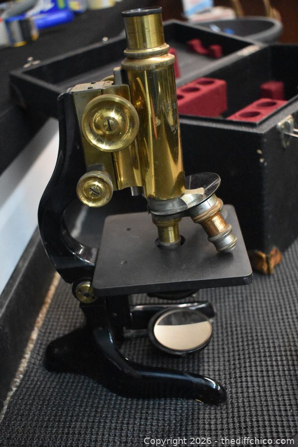 German Vintage Microscope, Accessories and Box