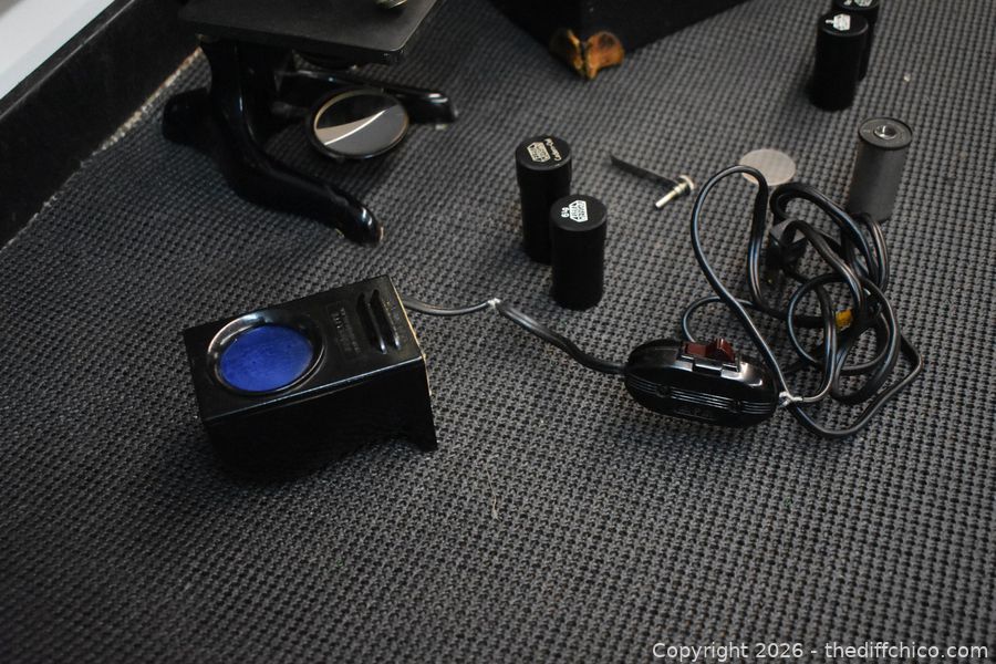 Lot #0213: German Vintage Microscope, Accessories and Box