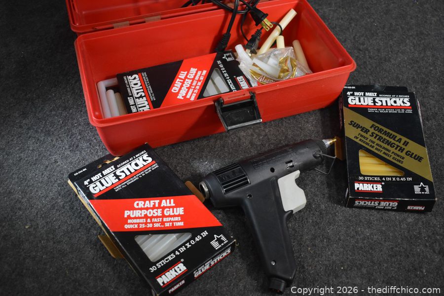 Lot #0101: Glue Guns, Sticks plus Container