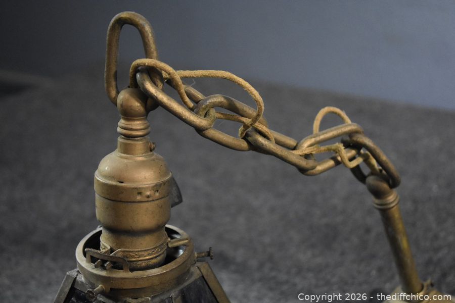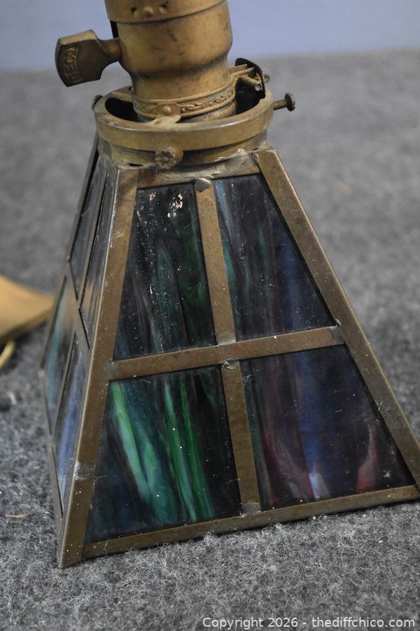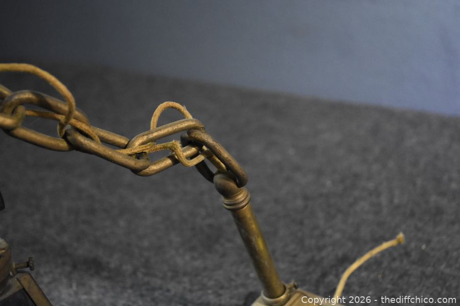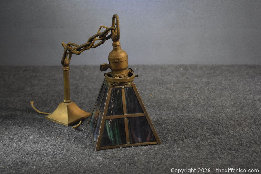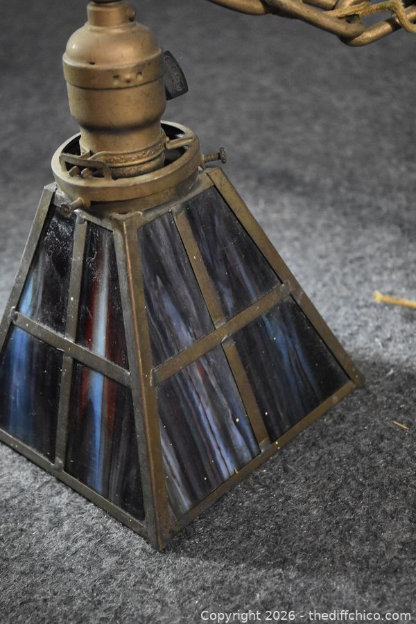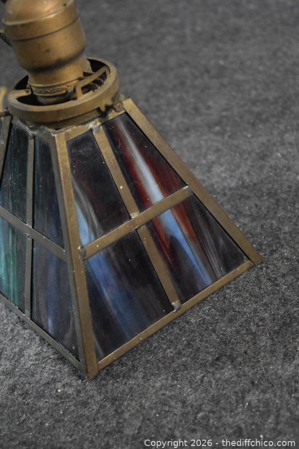 Lot #0263: Vintage Metal Ceiling Stain Glass Lamp