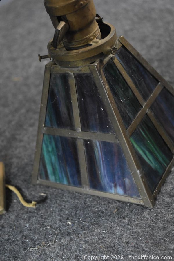 Vintage Metal Ceiling Stain Glass Lamp